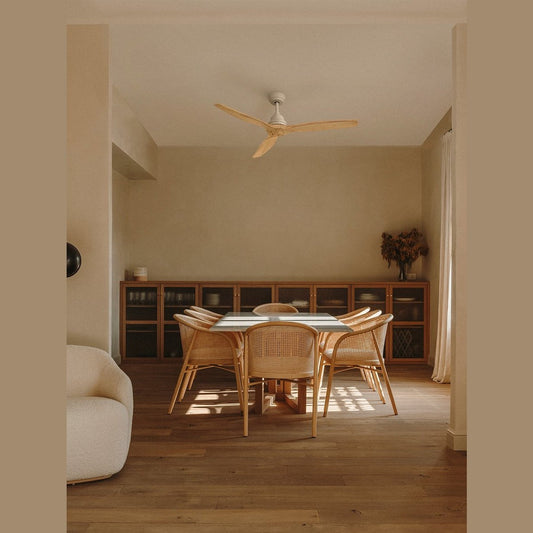 Create - Windwood 75w Silent Ceiling Fan Ø132 Cm / White And Natural Wood